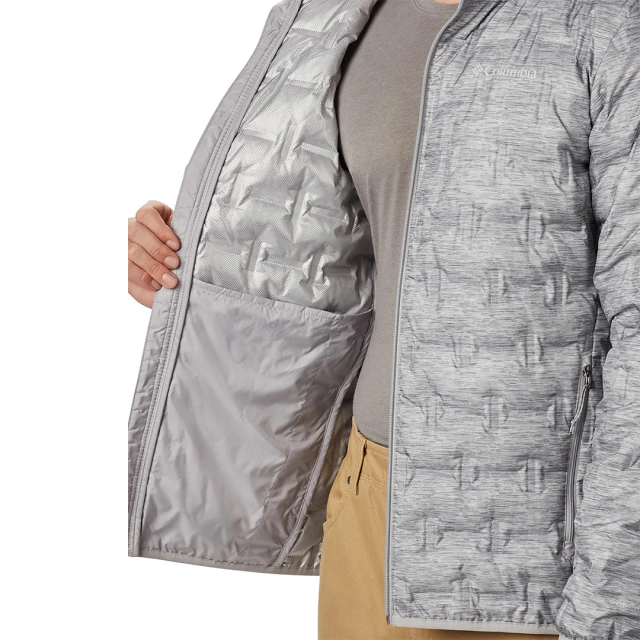 Cada característica da jaqueta down masculina Delta Ridge™ é desenvolvida para garantir o melhor desempenho e conforto durante o uso, como o tecido resistente à água com costuras termo-seladas que oferecem maior conforto e elegância ao vestir.