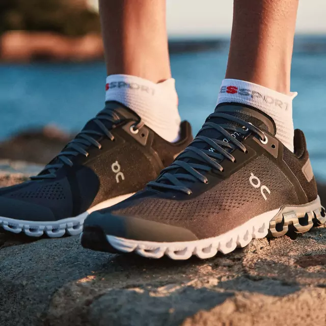 – Malha de ultra-ventilação – As zonas de malha à volta do tornozelo, na parte superior do pé e dos dedos aumentam a sensação de leveza e conforto. Graças a estas zonas de ventilação, a meia é mais transpirável, eliminando mais rapidamente a umidade e o suor. Evita que o pé sobreaqueça e que se criem bolhas.