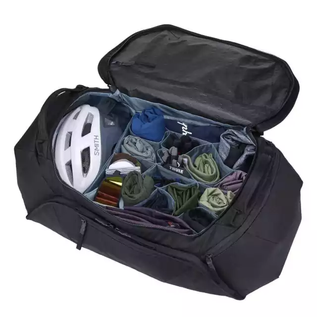 Há uma razão pela qual a mochila de bicicleta Thule RoundTrip é a favorita entre os ciclistas. Esta bolsa de equipamentos de bicicleta é construída com organização infinita para abrigar itens vestíveis e acessórios de um passeio para o outro. Soluções de armazenamento inteligentes incluem o compartimento para sapatos forrado com lona para fácil limpeza, um compartimento dedicado para capacete e um bolso com tampa para roupas suadas. Embalar tudo é fácil graças à abertura larga da bolsa e, com uma capacidade de 55L, é perfeita para 3 a 5 dias de equipamentos de bicicleta de estrada ou mountain bike.